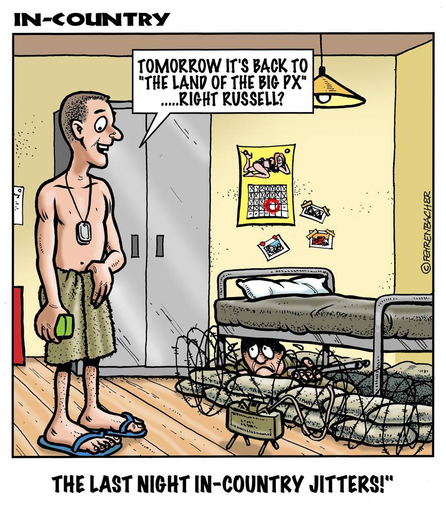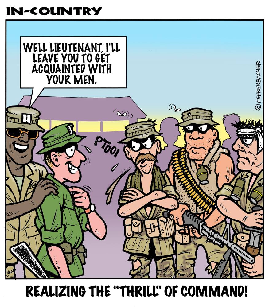Phil enlisted in the Army in 1965 where you served for years in Vietnam.  He became a graphic designer and has worked for the state of Oregon for 26 years.  He retired in 2003 and started the Cartoon "In-Country".  The cartoons reflect his experiences during his tour of duty in South Vietnam.