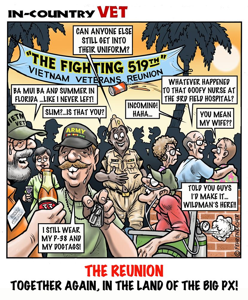 Phil enlisted in the Army in 1965 where you served for years in Vietnam.  He became a graphic designer and has worked for the state of Oregon for 26 years.  He retired in 2003 and started the Cartoon "In-Country".  The cartoons reflect his experiences during his tour of duty in South Vietnam.